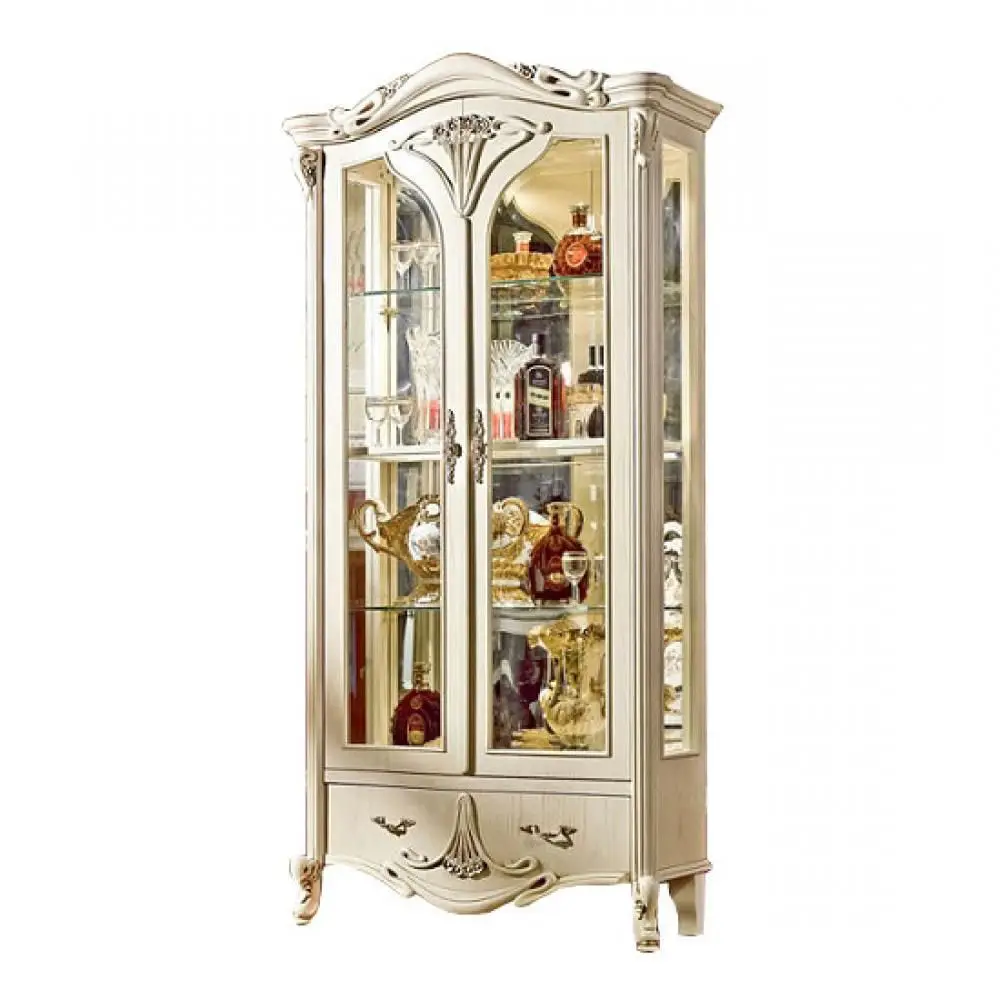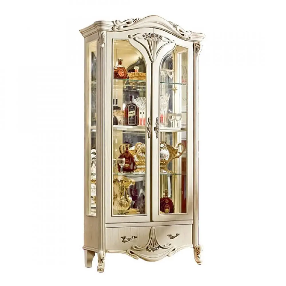 Витрина 2х-дверная Amelia выполнена в классическом стиле из массива северной березы в шпоне ясеня, покрыта эмалью с нанесением патины.