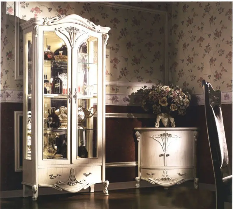 Стеклянные полки витрины обрамлены деревянной рамкой. Витрина имеет подсветку, зеркальную заднюю стенку, вариант лицевой фурнитуры в оттенке золоченное серебро. Глубокий и густой цвет, массивная и элегантная форма, сложная натуральная и экологически чистая мебель Amelia разрабатывалась Миланским дизайн бюро. Вся мебель коллекции выполнена из массива северной березы, в том числе скрытые элементы. Мебель из натурального дерева не выделяет вредных веществ и имеет долгий срок службы. Каждая деталь изделия вырезана вручную, а патина из натурального серебра и изящные линии придают изделиям особенно элегантный и роскошный вид. Дизайн мебели коллекции Amelia исполняется по строгим итальянским технологиям. Разнообразие мебели поможет обустроить любые квадратные метры: гостиную, кухню столовую, кабинет, спальню.