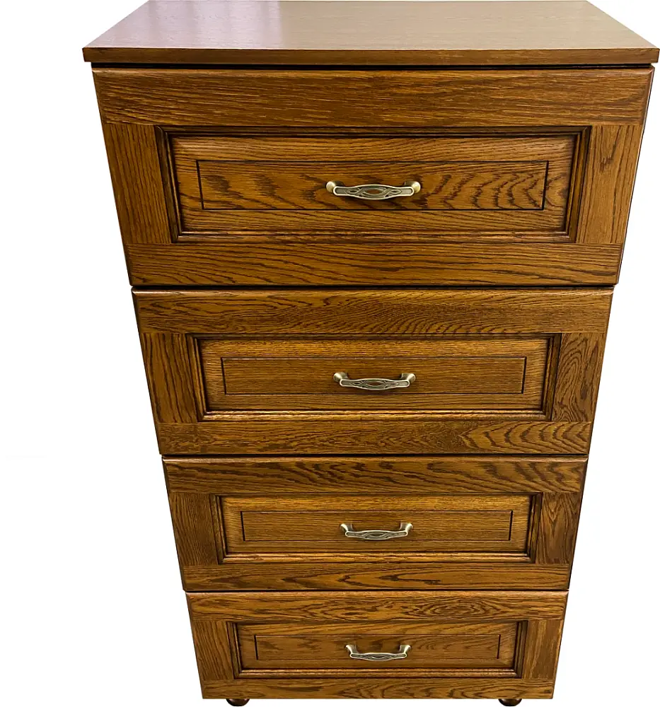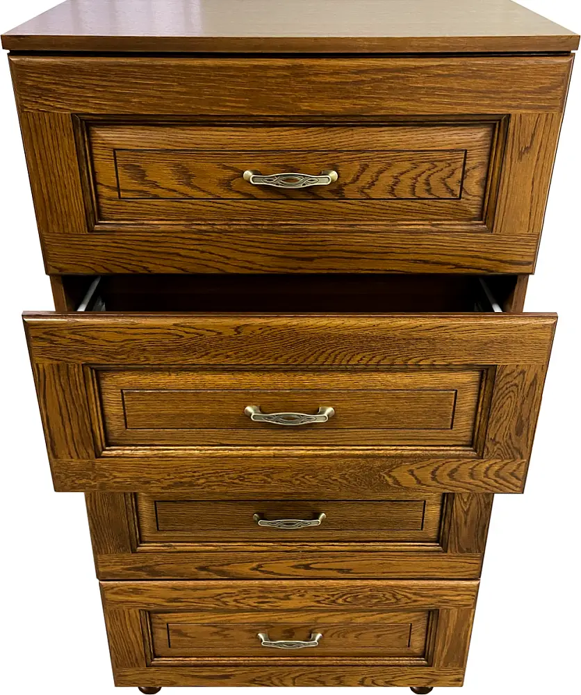 Оригинальный и функциональный комод с 4-мя вместительными выдвижными ящиками удачно разместится в спальне, гостиной, прихожей, детской. Комод изготовлен из высококачественных материалов, с использованием фурнитуры европейского качества, фасады из массива дерева, выдвижные механизмы выдерживают нагрузку более 10 кг.