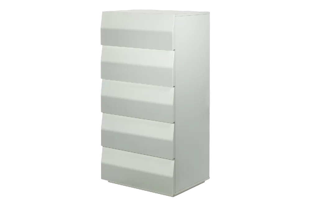 Комод высокий глянцевый 19 c 5 ящиками Опал белый