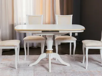 Стол обеденный раздвижной СОФИЯ-1 (1000-1300)х800,шпон дуба эмаль белая , патина золото