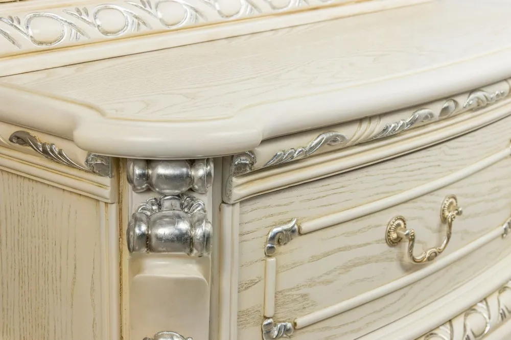 Напольное зеркало Margaret создаст роскошную и романтичную атмосферу дворцовой Франции, станет украшением интерьера, наполнив его уютом и роскошью. Зеркала выполнены из массива северной березы в шпоне ясеня, покрыты эмалью, патиной. Зеркало выполнено без эффекта искажения отражения. Напольное зеркало имеет вместительный ящик, дно обито красным бархатом, который дает эффект устойчивости предметам, находящимся внутри. Вся мебель коллекции выполнена из массива северной березы, в том числе скрытые элементы. Мебель из натурального дерева не выделяет вредных веществ и имеет долгий срок службы. Каждая деталь изделия вырезана вручную, а патина из натурального серебра и нежные изящные линии придают изделиям особенно элегантный и роскошный вид. Дизайн зеркал коллекции Margaret исполняется в классическом стиле по строгим итальянским технологиям. Разнообразие мебели поможет обустроить любые жилые квадратные метры: гостиную, кухню столовую, кабинет, спальню.